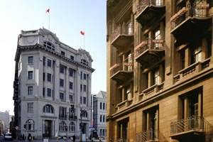 原为日清大楼、日清汽船株式会社。德和洋行[英]设计,建于1921~1925年,钢筋混凝…